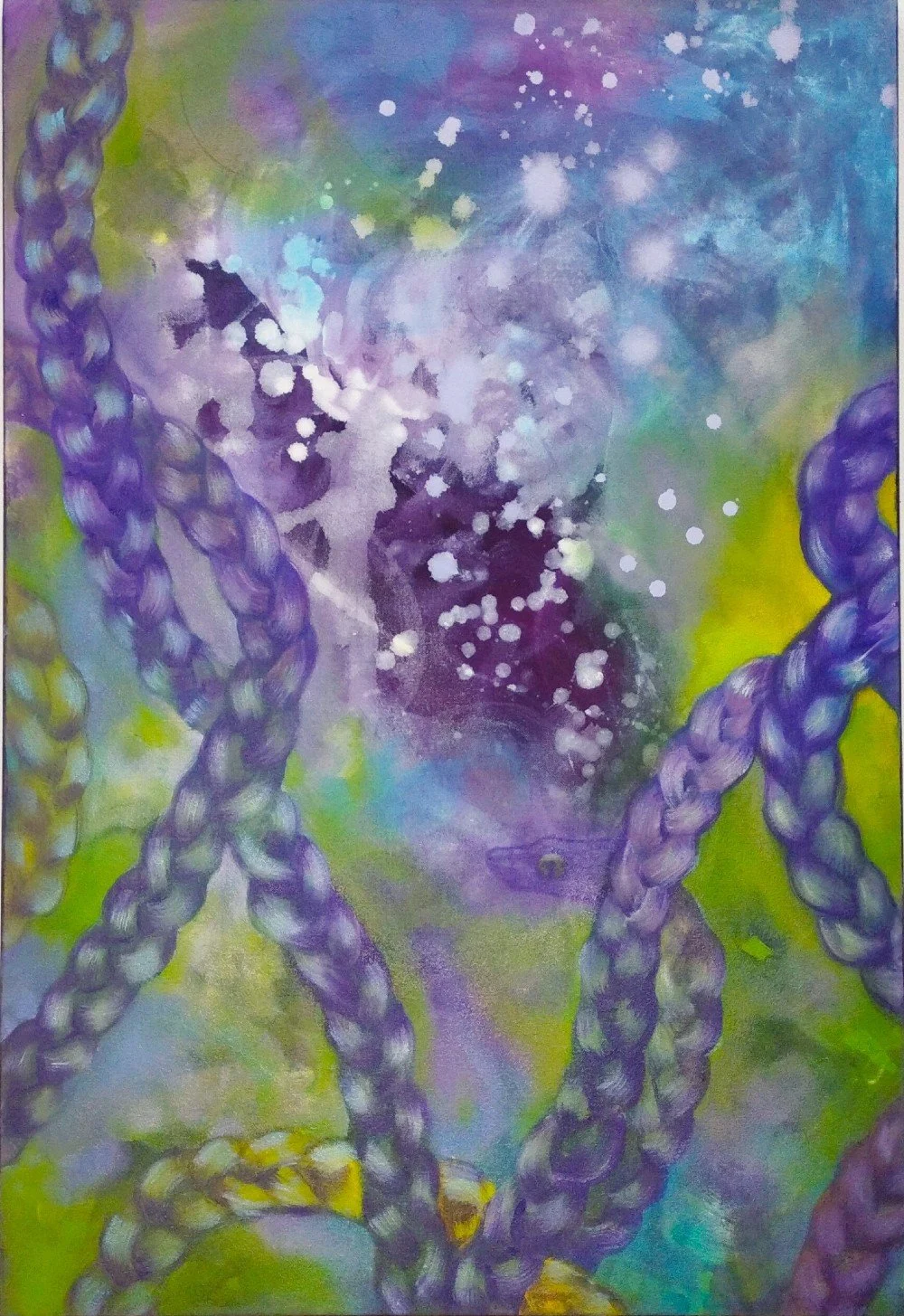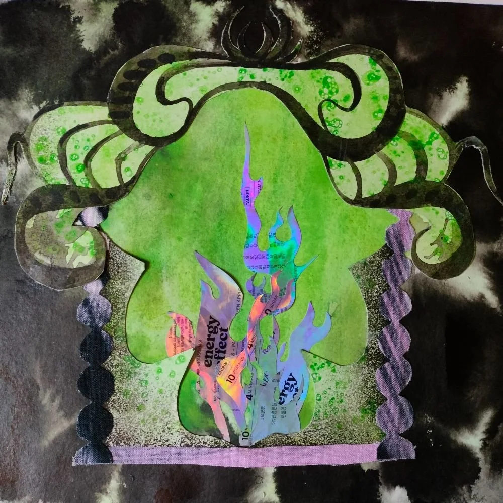 (2024) Acrylic paint, spray paint, holographic cardboard